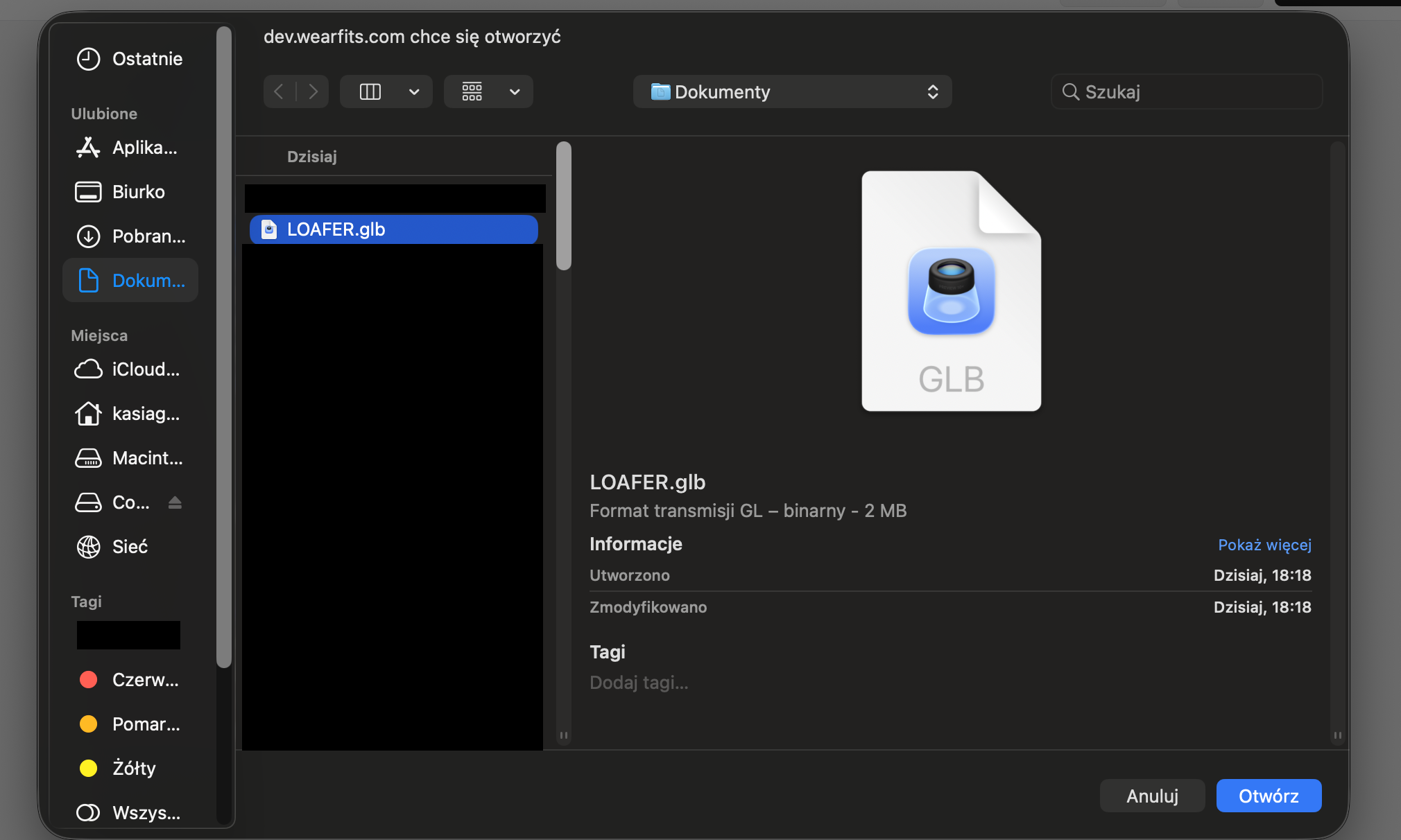 Choose the 3D shoe file from your computer and click “Open”.