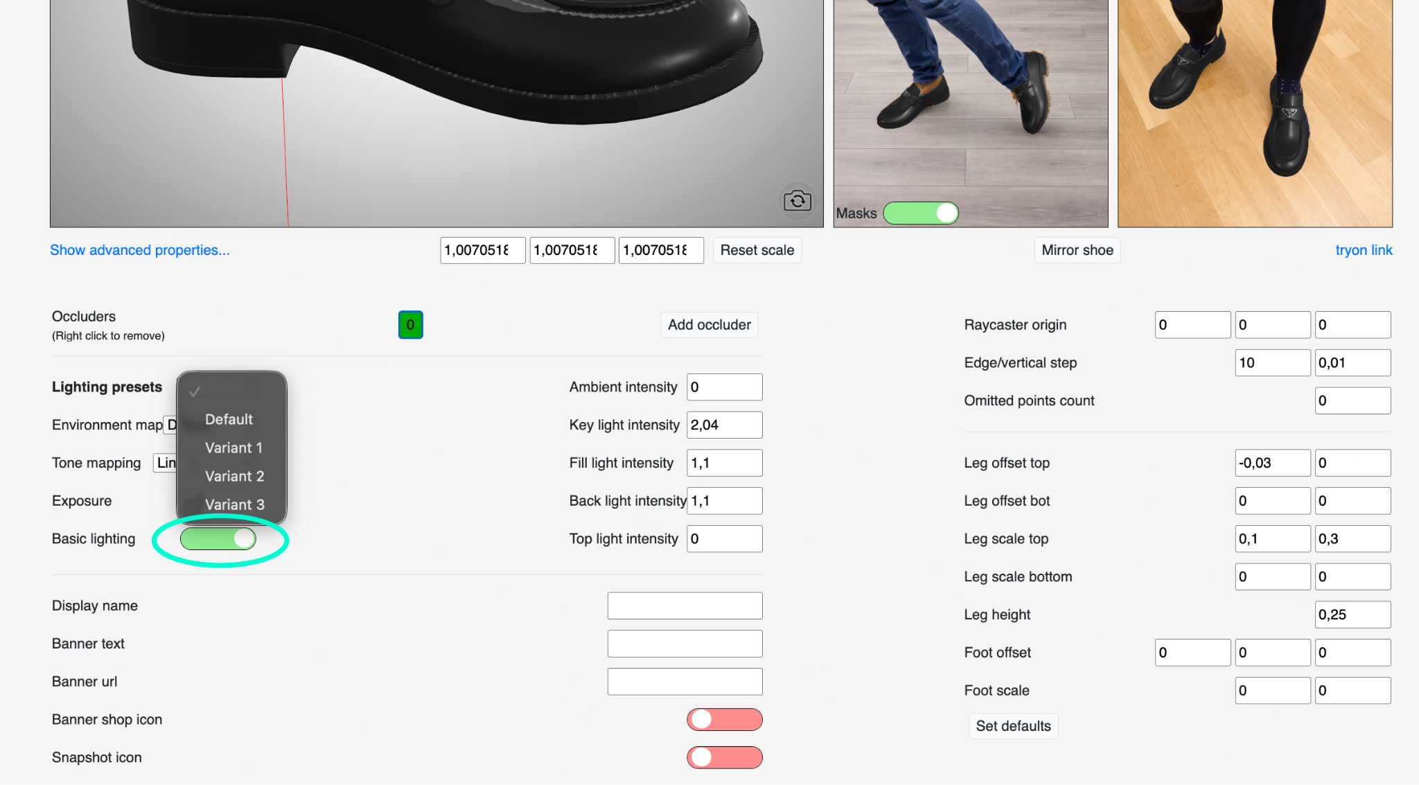 Once the model is ready, use the shoe editor to validate the fit and save the public mobile experience.